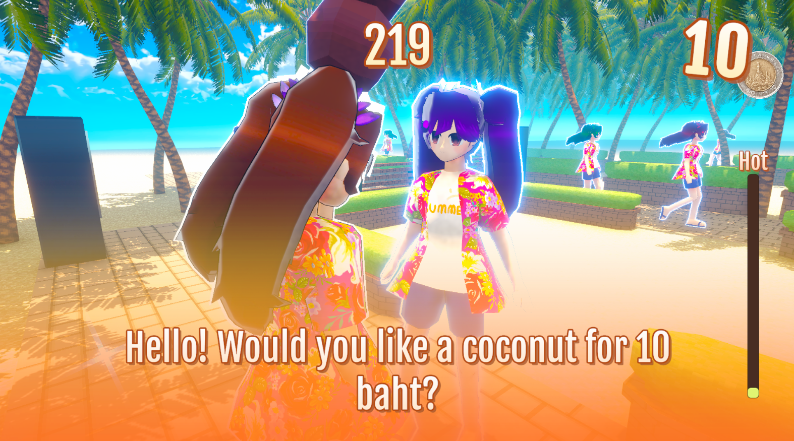 -- ภายในเกม คุณจะต้องเฉาะมะพร้าว เพื่อนำไปขายให้นักท่องเที่ยว --